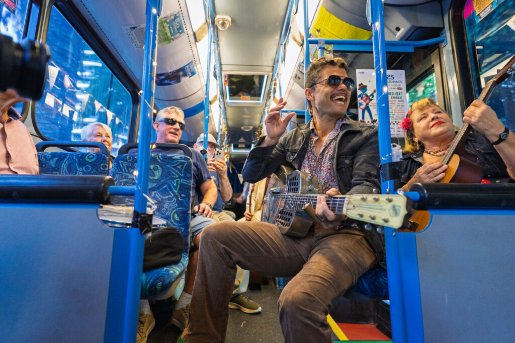 As part of the activation, the bus transported Blues on Broadbeach superfans along with artists performing at the festival. This created a direct connection between the festival brand and its audience, turning the vehicle into more than a moving advertisement.