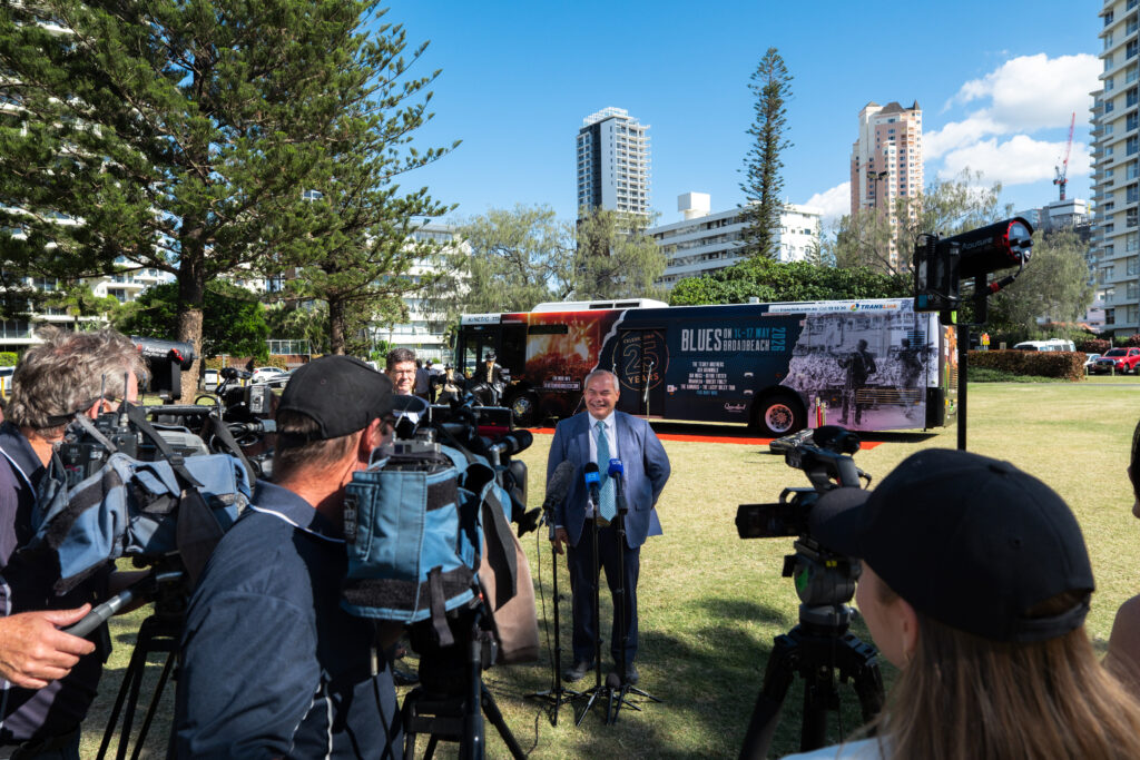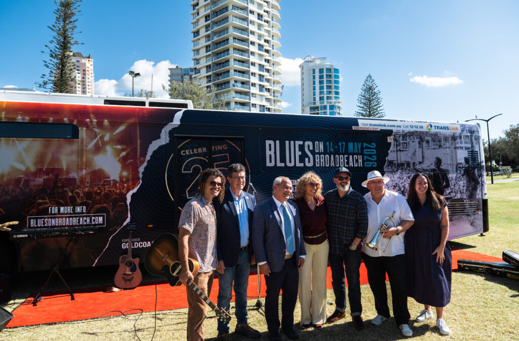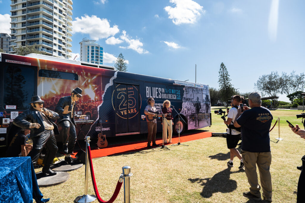 Experience Gold Coast used a fully wrapped bus on the Gold Coast to promote Blues on Broadbeach ahead of the festival in May 2026, creating a campaign that combined transit advertising, live media, and audience engagement in one activation.